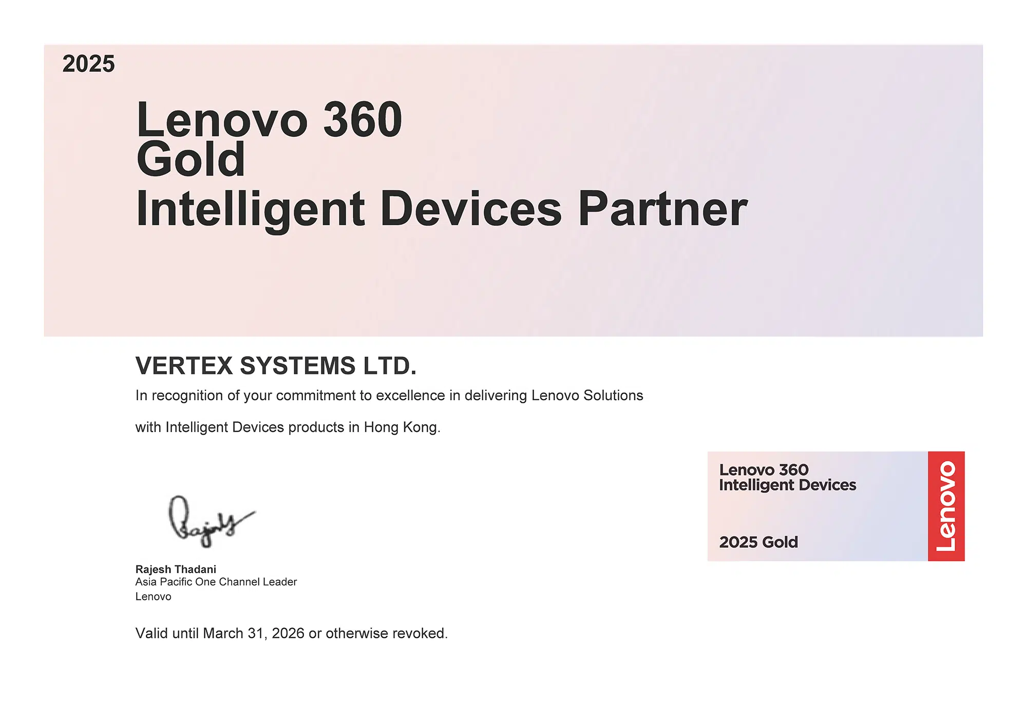 As an authorized Lenovo reseller, we are honoured to receive these certifications from the Lenovo 360 Partner Framework: