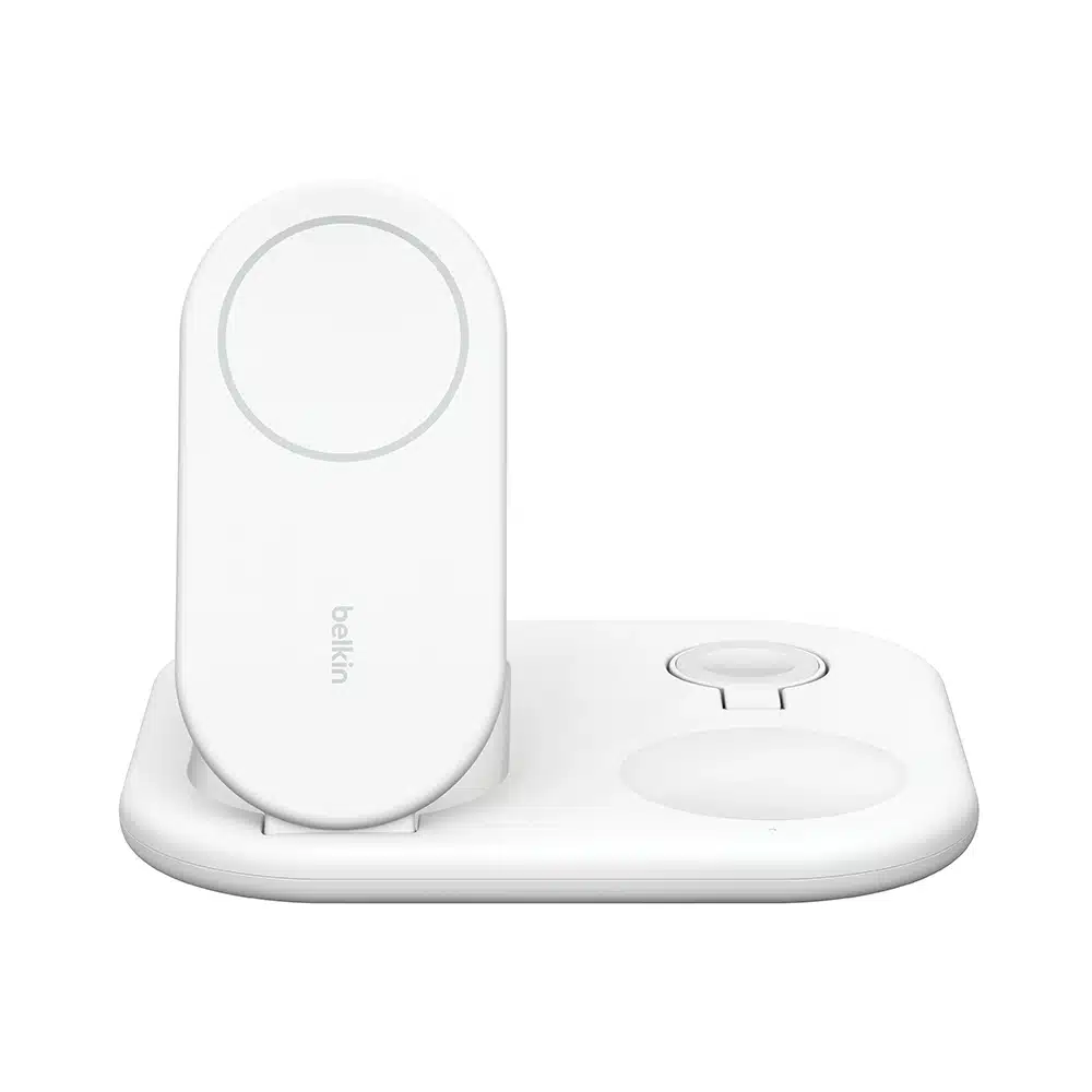 Charge your essentials with an ultra-convenient foldable stand. It delivers 15W of fast wireless charging to your iPhone, 5W to your Apple Watch and 5W to your AirPods. Leveraging MagSafe compatibility and Qi2 technology, you can place your iPhone on the charging pad for a secure, magnetic connection.