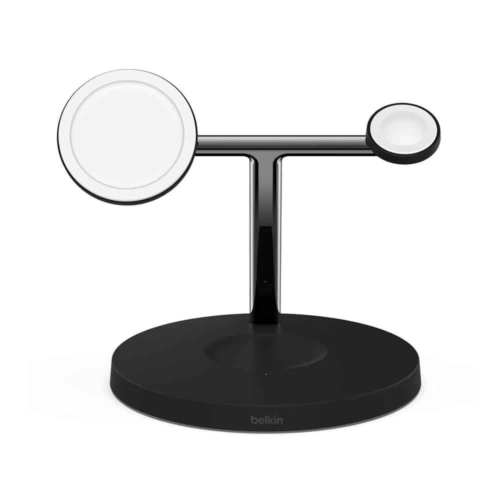 A 15-watt MagSafe charging stand powers your iPhone 15 through iPhone 12 series device while a powerful magnetic charging module for your Apple Watch and convenient pad for your AirPods get to work.