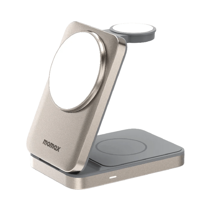 Momax 1-Charge Q.Port Foldable Qi2 3-in-1 Magnetic Wireless Charging Stand | Titanium (UD36L)
