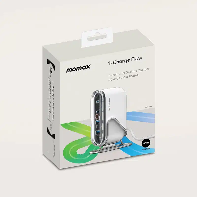 Momax 1-Charge Flow 80W 4-Port GaN Desktop Charger | White (UM53UKW)