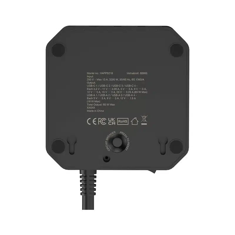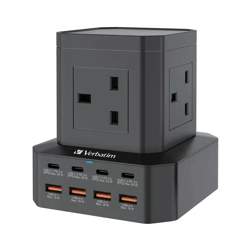 Verbatim 4 AC Outlet + 8 Port 65W PD & QC 3.0 Power Strip | Black (66960)