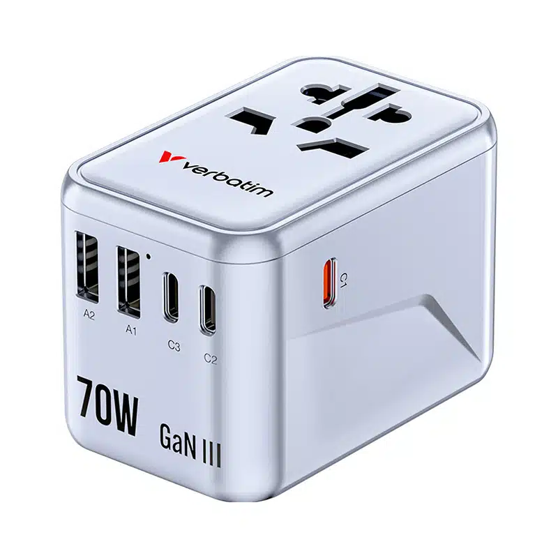 The Verbatim 70W Travel Adapter uses latest GaN III technology, a semiconductor material that can efficiently handle high voltage and high-frequency applications. It enables devices to be smaller, lighter, and more efficient compared to products using traditional silicon-based components.