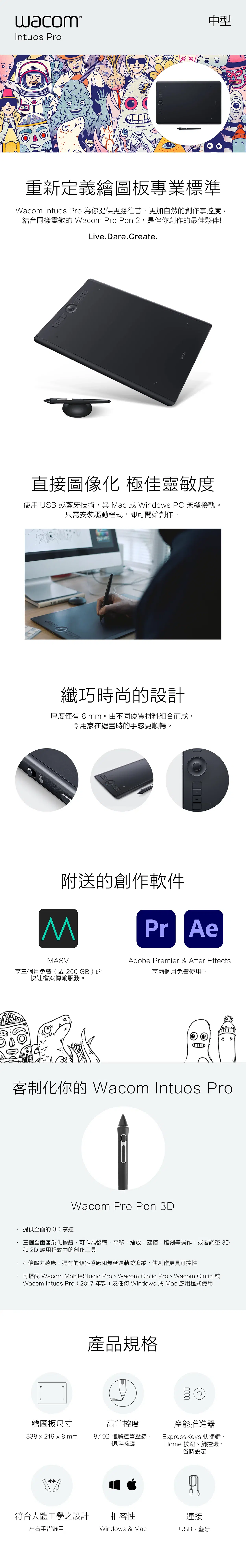 | Active Area | Intuos Pro M: 224 x 148 mm |