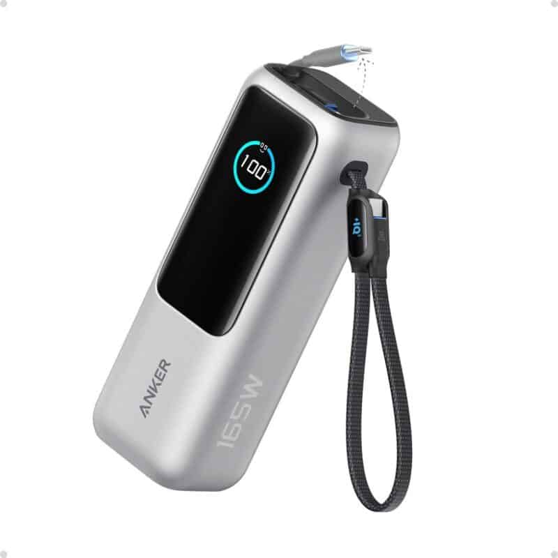 Anker 25,000mAh 165W 行動電源 | 內建可伸縮纜線 | 銀色 (A1695H41)