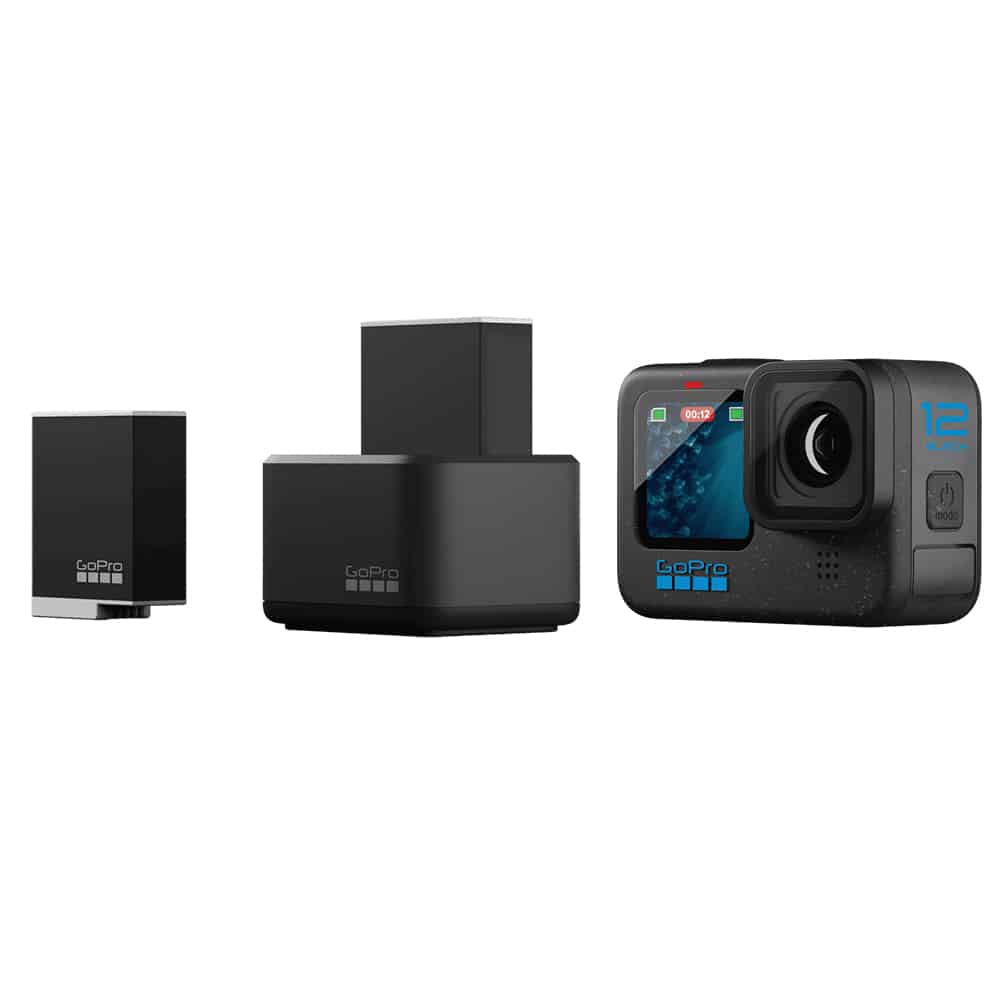 內含雙充電器,可同時為兩粒 GoPro 電池充電,另外附兩粒 Enduro 電池,可作為 HERO12 Black 或 HERO11 Black 的替換電池或備用電池。它們也可與 HERO10 Black 搭配使用,以提升低溫環境下的效能,並在常溫下延長錄製時間。