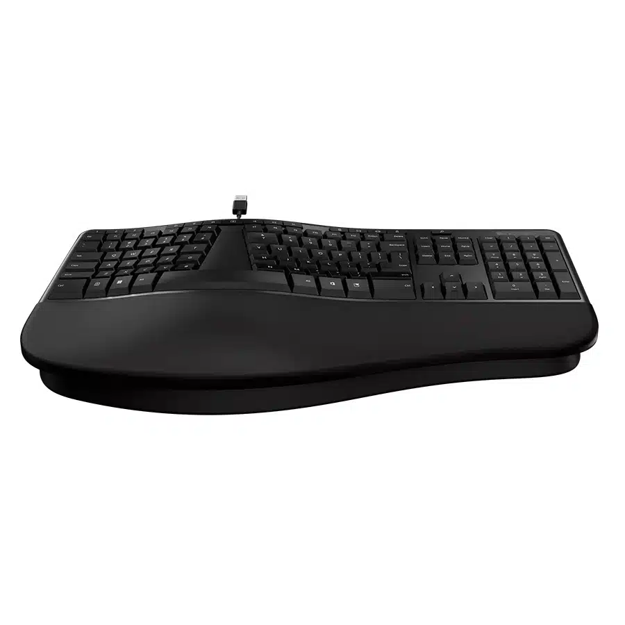 這款由微軟™設計的符合人體工學的鍵盤,旨在提供舒適的全天打字體驗,其設計纖薄、精緻且匠心獨運。鍵盤採用符合人體工學的分離式按鍵設計、帶襯墊的掌托、快捷鍵以及支撐結構,旨在減少疲勞,同時提升您的創作體驗。包裝盒上的圖片僅供參考,可能與實際鍵盤有所不同。