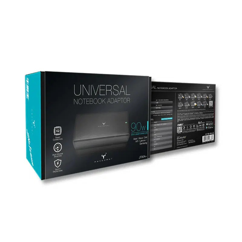 MaxPower 牛魔王 JF90A+ 90W 萬用手提電腦充電器 | 隨附 11 個智能手提電腦插頭 (MAXPJF90APU-01)