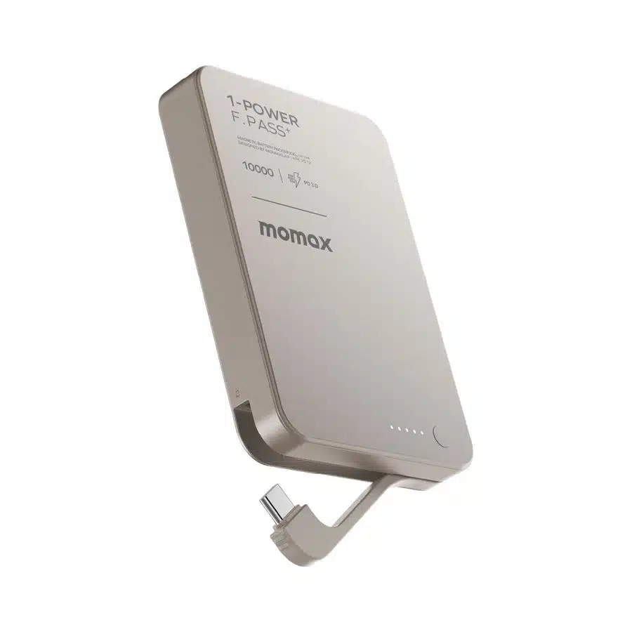 Momax 1-Power F.Pass+ 10000mAh 磁吸帶線流動電源 (CCC 認證) | 鈦色 (IP158L)