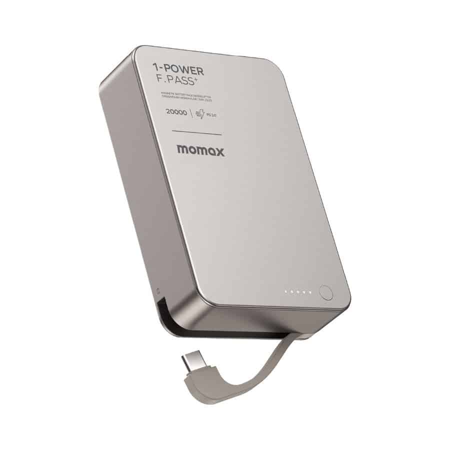 Momax 1-Power F.Pass+ 20000mAh 磁吸帶線流動電源 (CCC 認證) | 鈦色 (IP159L)