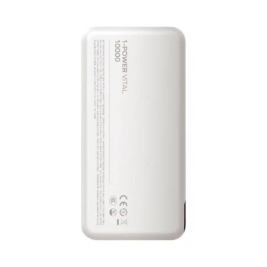 Momax 1-Power Vital 10000mAh 流動電源 (CCC 認證) | 白色 (IP155W)
