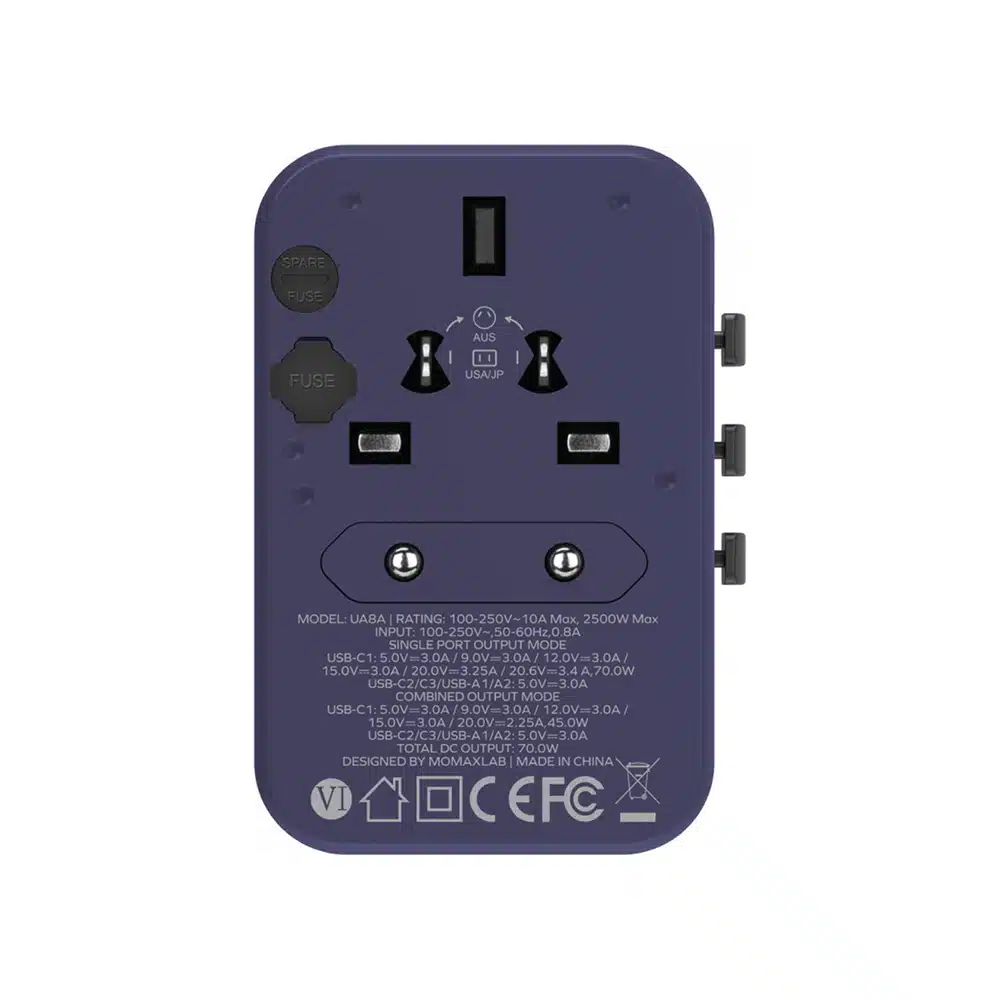- 內置 JP/US、AU、EU、UK 插座適用於全球大部分國家
