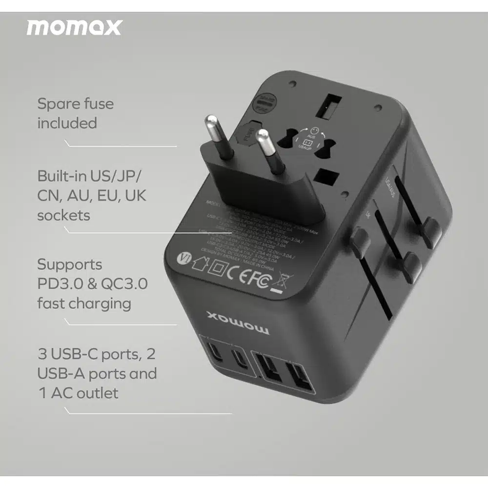 - 多端口設計,可以同時為 5 個裝置充電