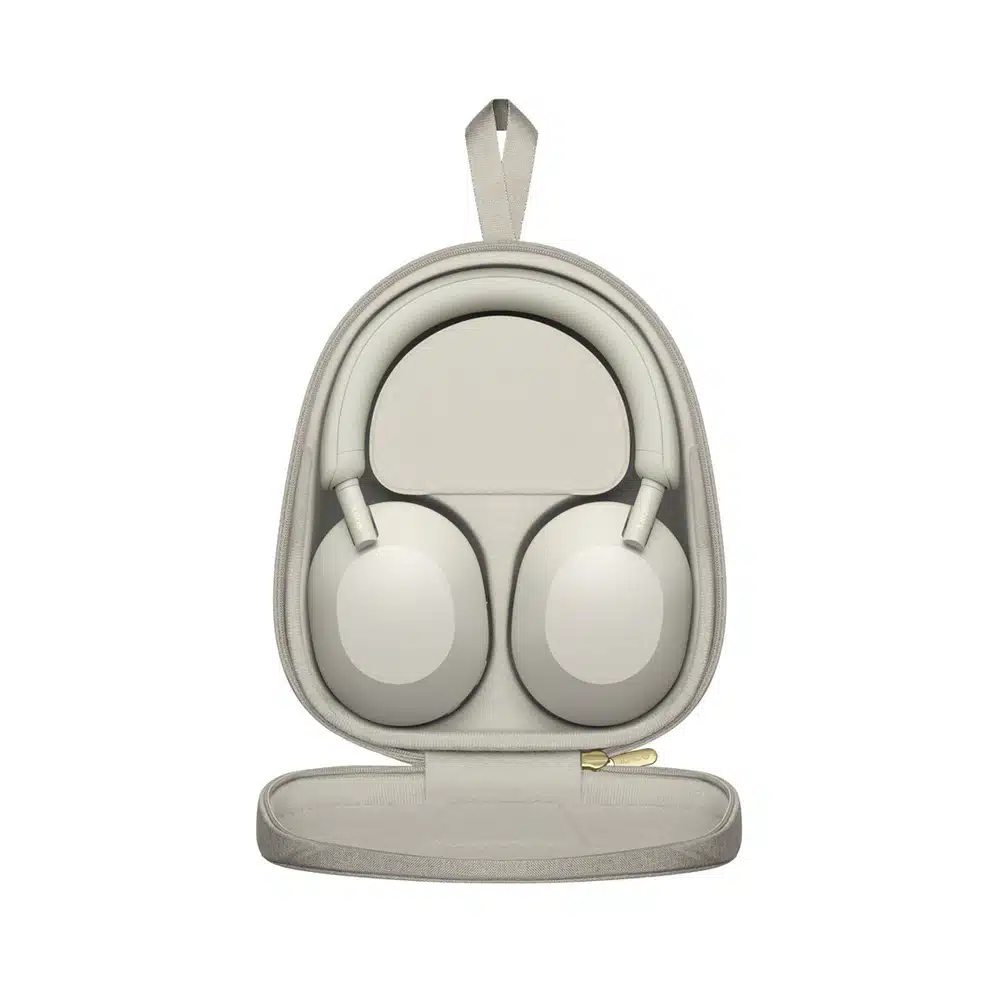 打開 WH-1000XM5 耳機的包裝,您會找到便攜盒、耳機線(約 1.2 米)和 USB 充電線。