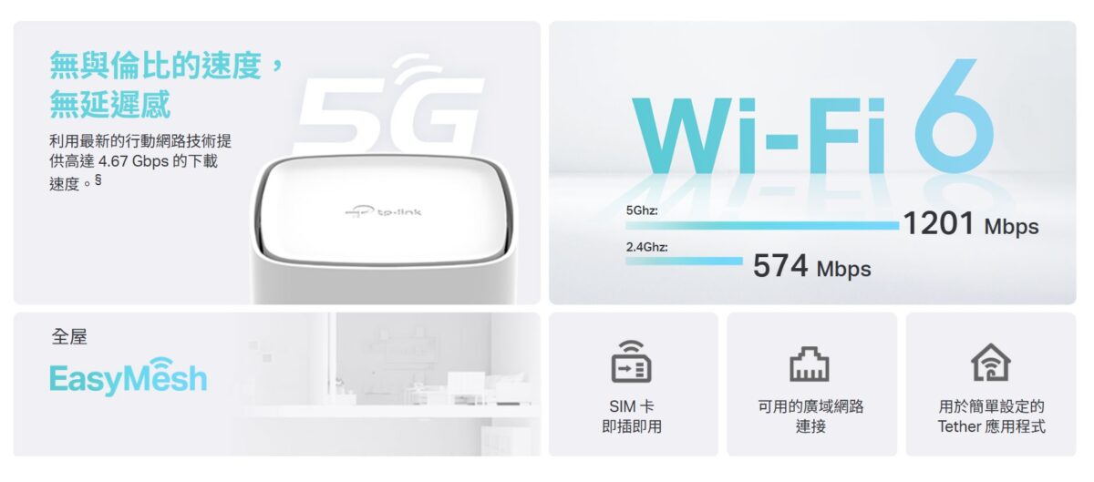 利用下載速度高達 4.67 Gbps 的先進 5G 網路。與多個 Wi-Fi 裝置共享您的 5G 網絡,享受不間斷的超高清電影、極快的文件下載以及流暢的視訊聊天和視訊會議。同時,NX200向下相容4G模式。**