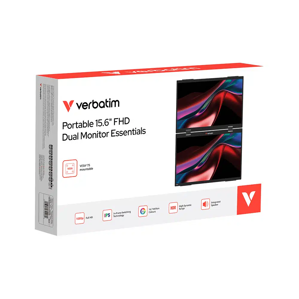 無論在辦公室、居家工作或外出,Verbatim 15.6 吋 FHD 雙螢幕便攜式顯示器 Essentials 提供靈活且精巧的解決方案,讓工作空間瞬間擴展。它採用兩塊垂直堆疊的螢幕,並支援多種顯示模式,包括延伸*、鏡像與 Ultra 模式,可無縫適應您的工作流程。憑藉其纖薄輕巧的設計,您可以在不佔用過多空間的情況下最大限度地提高工作效率。