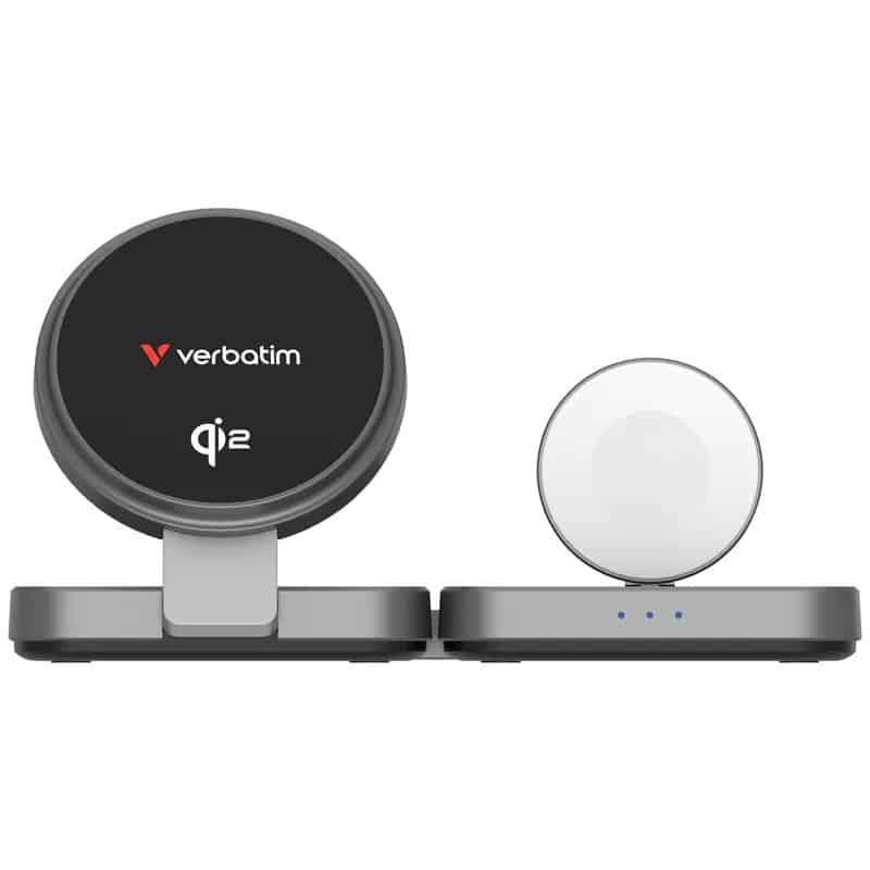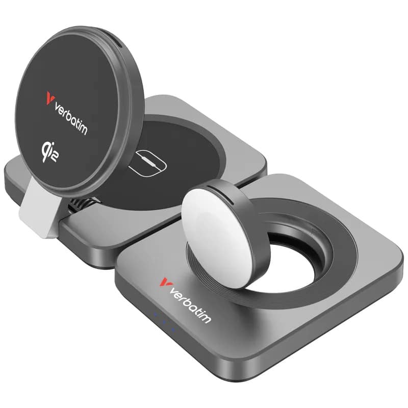 Verbatim 3-in-1 Qi2 無線充電器 | 灰色 (67033)