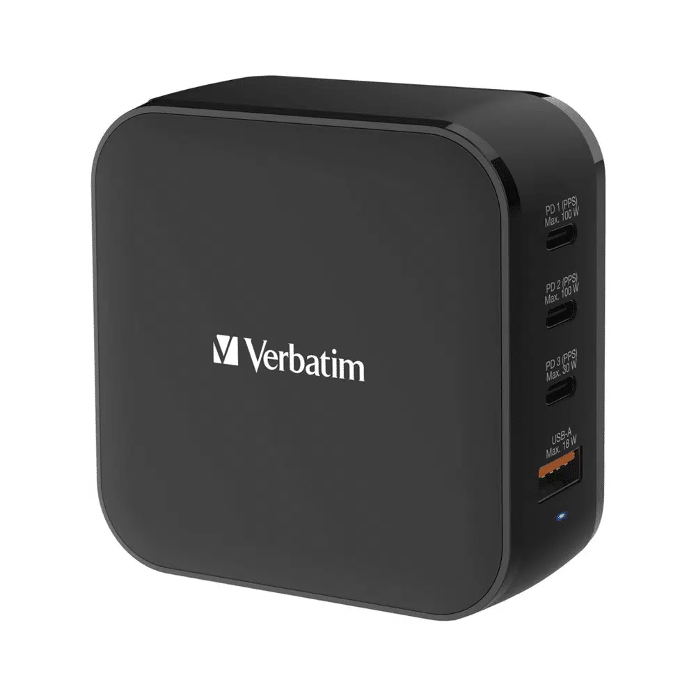 Verbatim 4 端口 150W PD & QC 3.0 GaN 充電器 | 附 AC 電源線 + 直立底座 (66910)