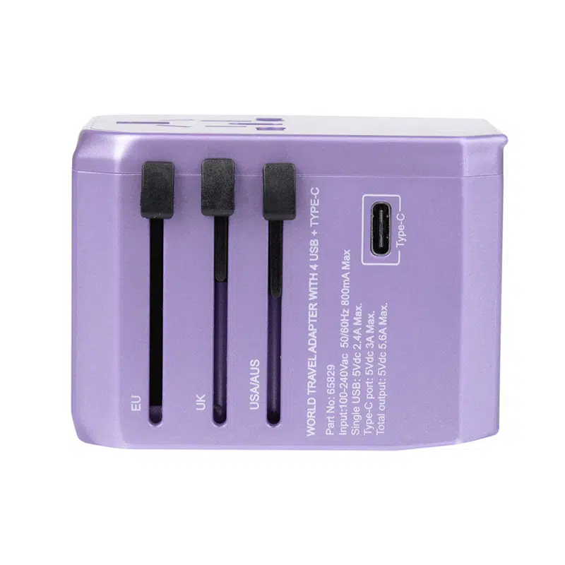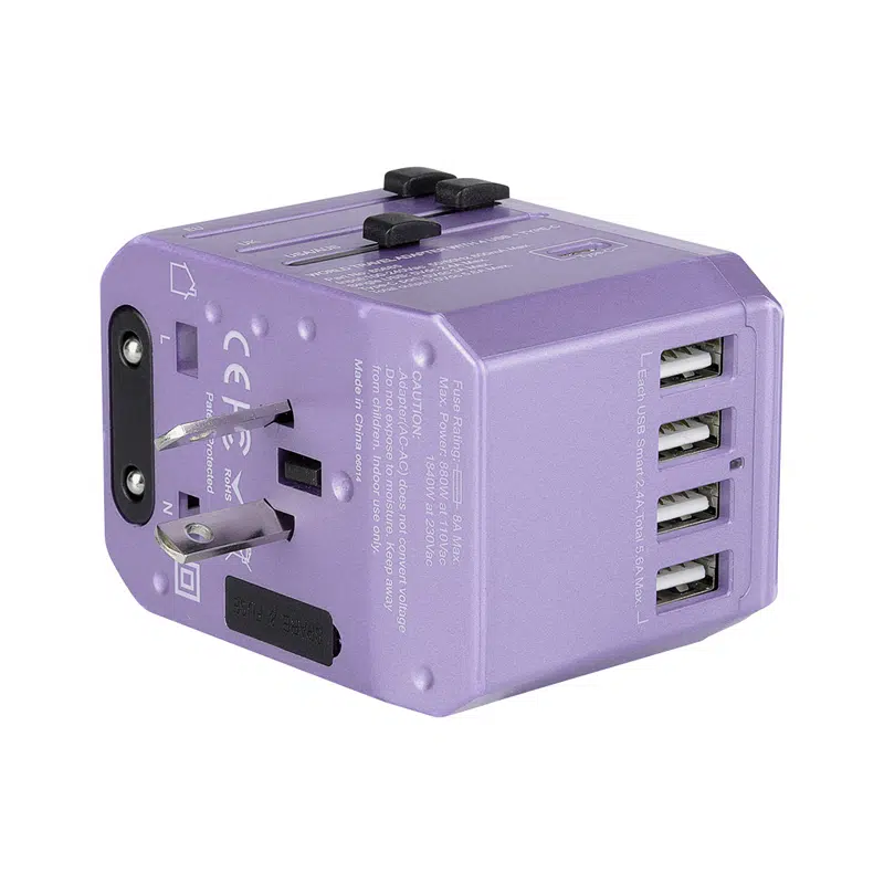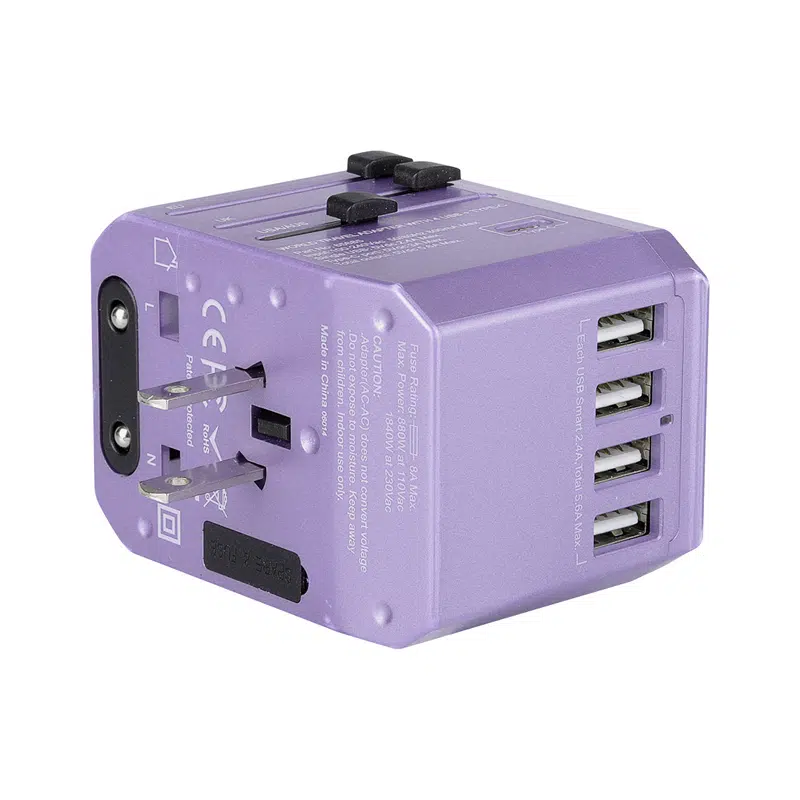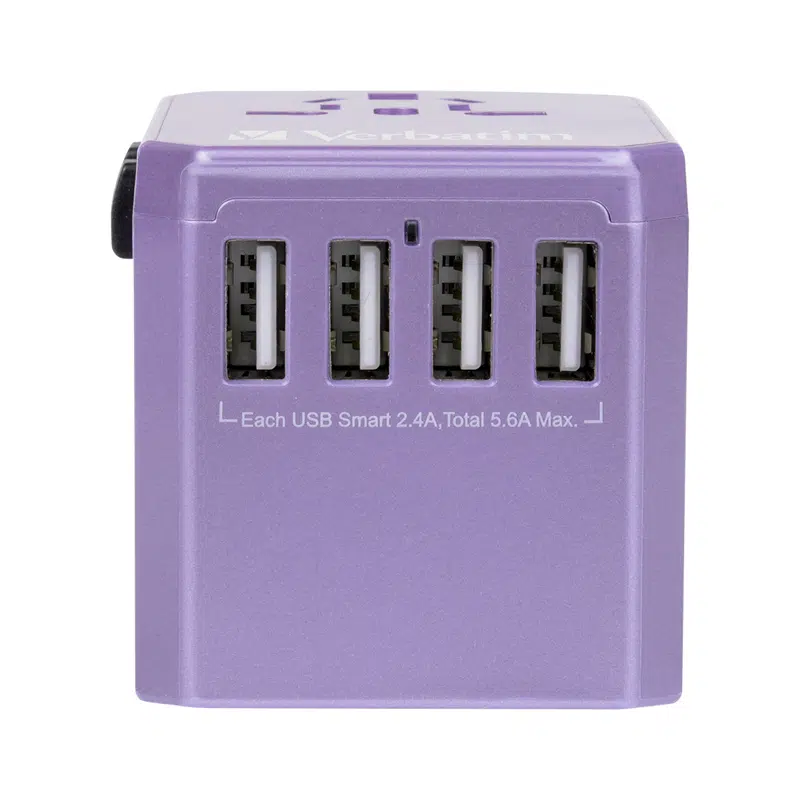 Verbatim 5 Port 5.6A 通用旅行轉插 | 紫色 (65829)