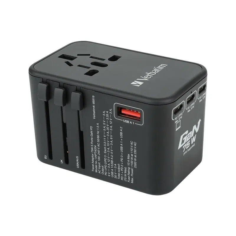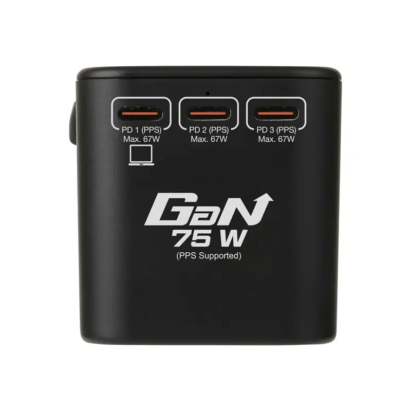 旅行充的最大總輸出為75W,能兼容最多3部裝置同時進行快速充電。